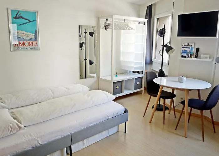 Disfruta de tus vacaciones en St Moritz en el Charmantes, gemütliches Studio, im Zentrum - C2 St Moritz. Ideal para quienes buscan una experiencia auténtica, está situado a 20 minutos a pie de la Mili Weber-Haus y a 450 metros de Rom.-kath. Pfarramt. Si viajas a St Moritz para esquiar, este apartamento de 26 m² te ofrece guardaesquís.
